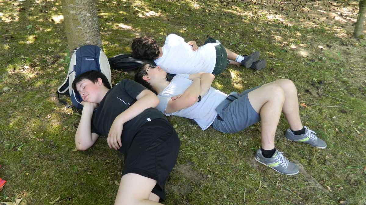 La randonnée entre bois et champs fut très agréable et ponctuée d'une pause pique-nique à Lévignen. Le retour après le repas fut moins évident, mais les élèves ont pu voir en passant les blockhaus de la Ligne Chauvineau que d'autres générations d'élèves ont remis en valeur.